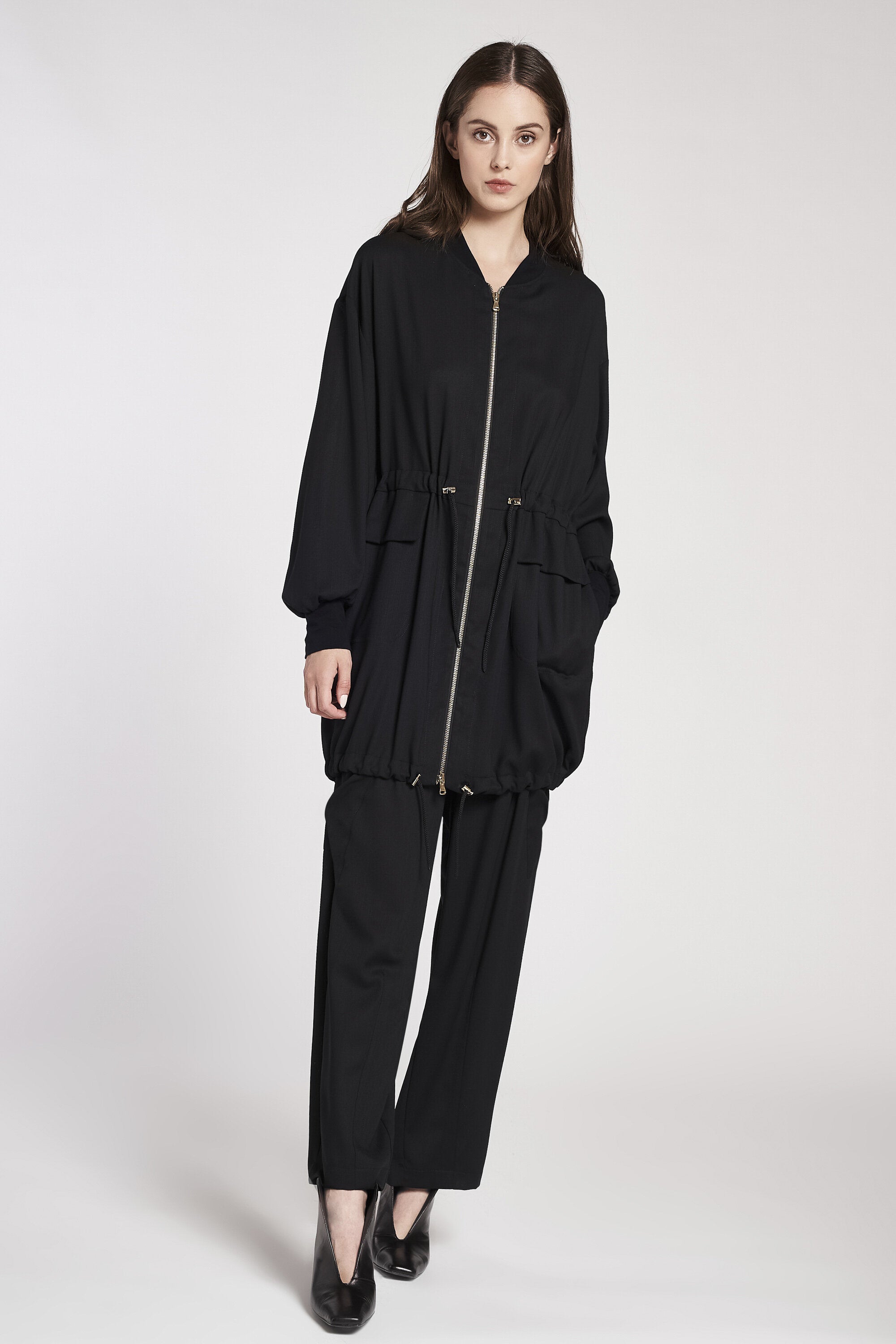 Parka in garza di lana con collo e polsini in jersey di viscosa. Coulisse in vita e nel fondo con...Learn more